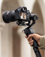 RS 3 Mini adopts an innovative redesign that includes a smaller build, integrated battery, and native vertical shooting capability. The compact and portable body can easily fit into a shoulder bag, allowing you to travel light. When in use, RS 3 Mini is about half the size of the RS 3 Pro, making it more convenient for long-duration use.