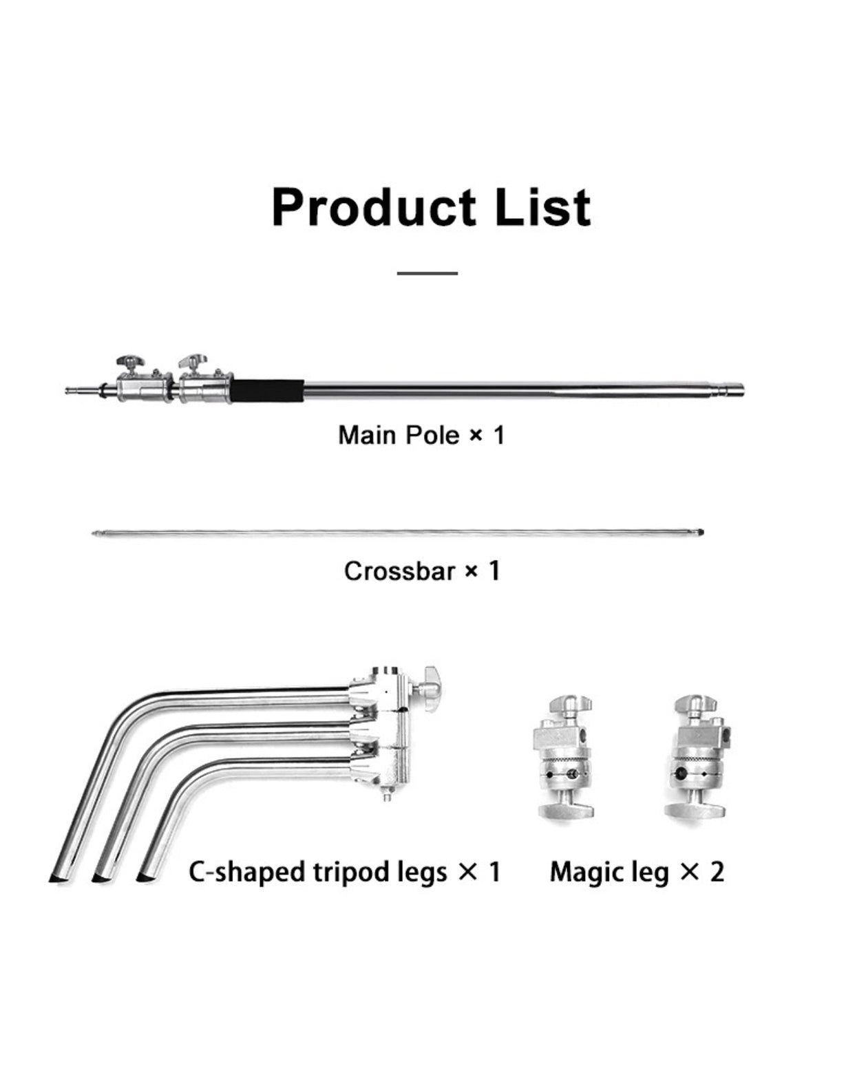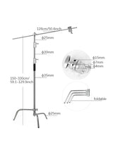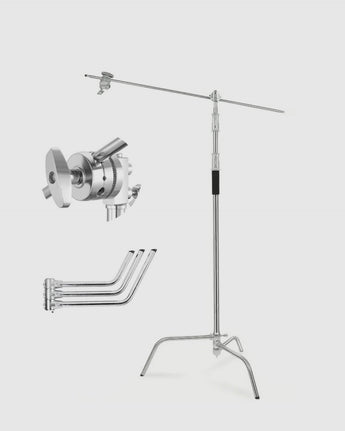 - 1 Package Includes: 1 x Sliver C Stand, 1 x Turtle Base, 1 x Extension Arm, 2 x Grip Head