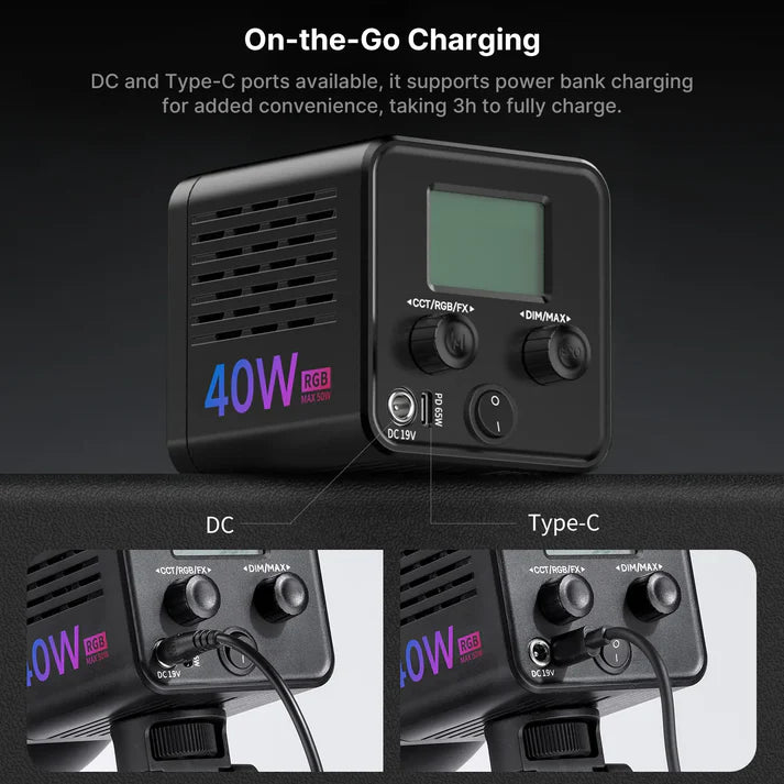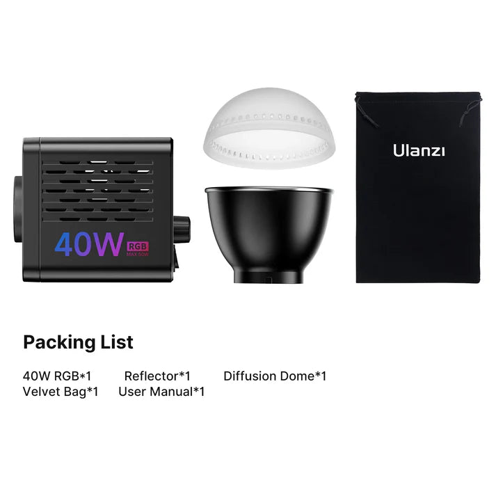 Specifications list for the Ulanzi L024 40W RGB Portable LED Video Light: