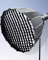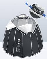 Hexadecagon Parabolic Softbox maintains good reflective performance in a relatively closed softbox environment, helping diffuse harsh flash light, removing shadows, and providing ultimate soft-even lighting. Great for photography enthusiasts, novices, semi-professional and professional photographers and suitable to be used in weddings, commercial advertising, fashion, live shows, studio portrait product video shooting, etc.