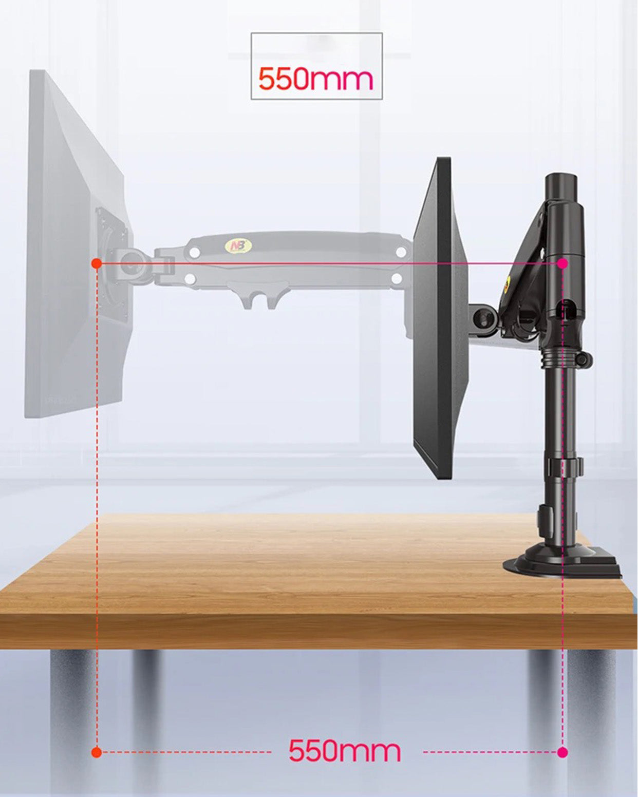 NB H100 Gas Spring Ergonomic Monitor Arm (22"-35")