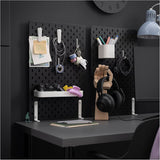 You can place the pegboard on a wall – or fix it to your desk by completing with connectors that are sold separately.