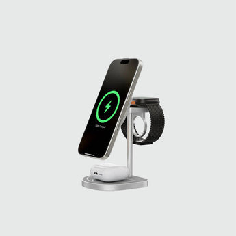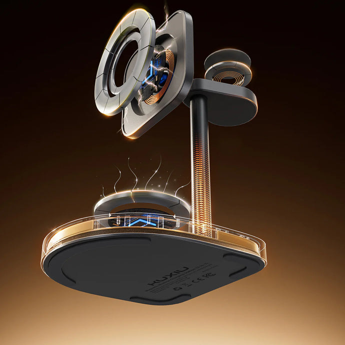 The KUXIU 3-Point Power Creative Magnetic 3-in-1 Wireless Charging Stand is designed for your Apple devices, supporting simultaneous wireless charging for iPhone (up to 15W), Apple Watch (up to 5W), and AirPods (up to 5W).