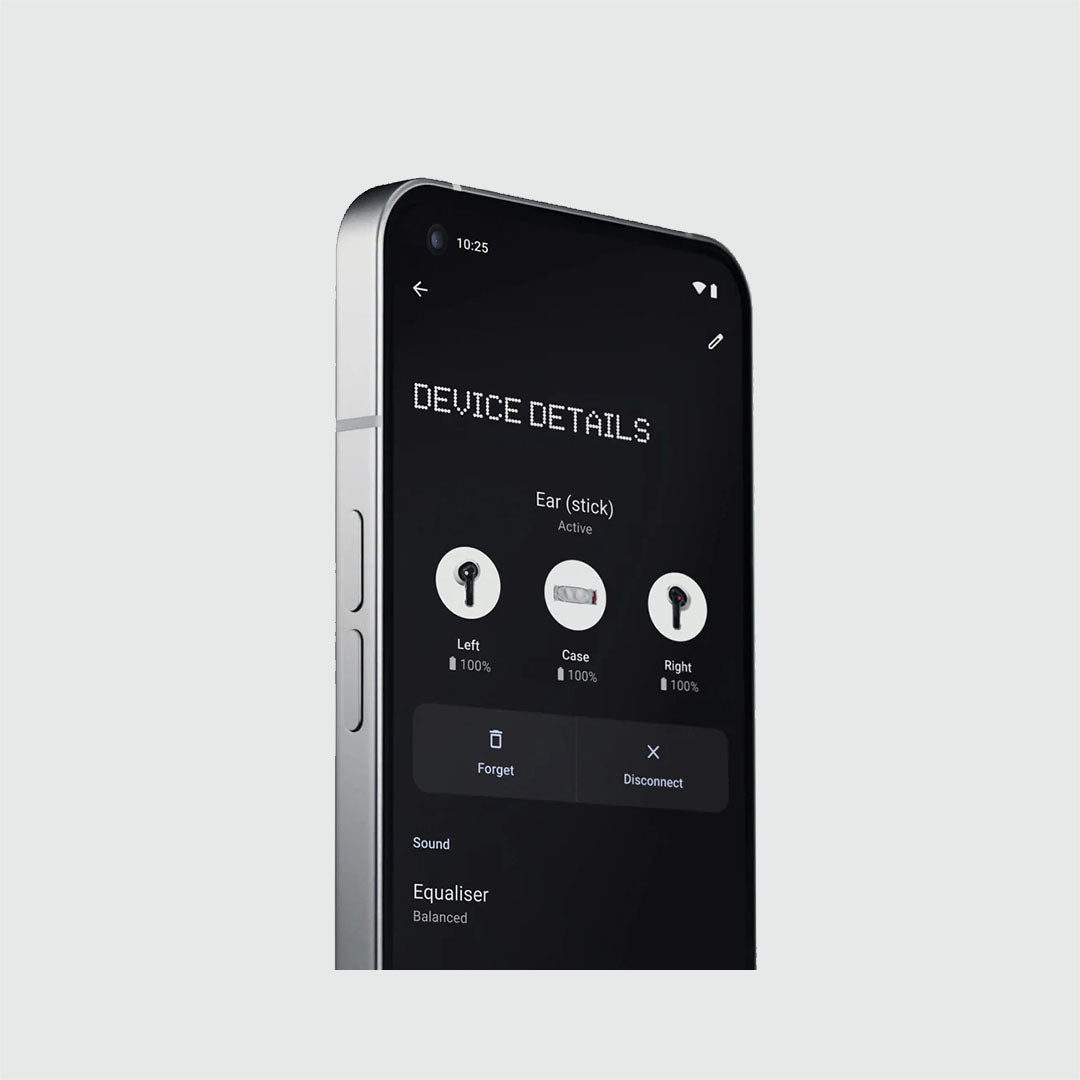 The Nothing Ear (Stick) features a transparent, half-in-ear design that delivers lightweight comfort and efficient everyday audio performance. Ideal for users who prioritize ambient awareness over sealed, noise-cancelling designs.