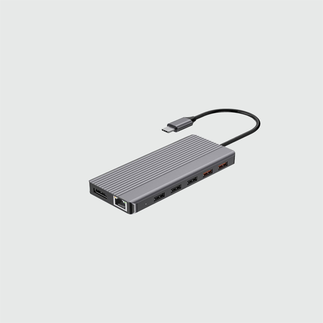 Powerology 12-in-1 USB-C Hub with 100W PD, HDMI, Ethernet, USB, SD Slots - Dark