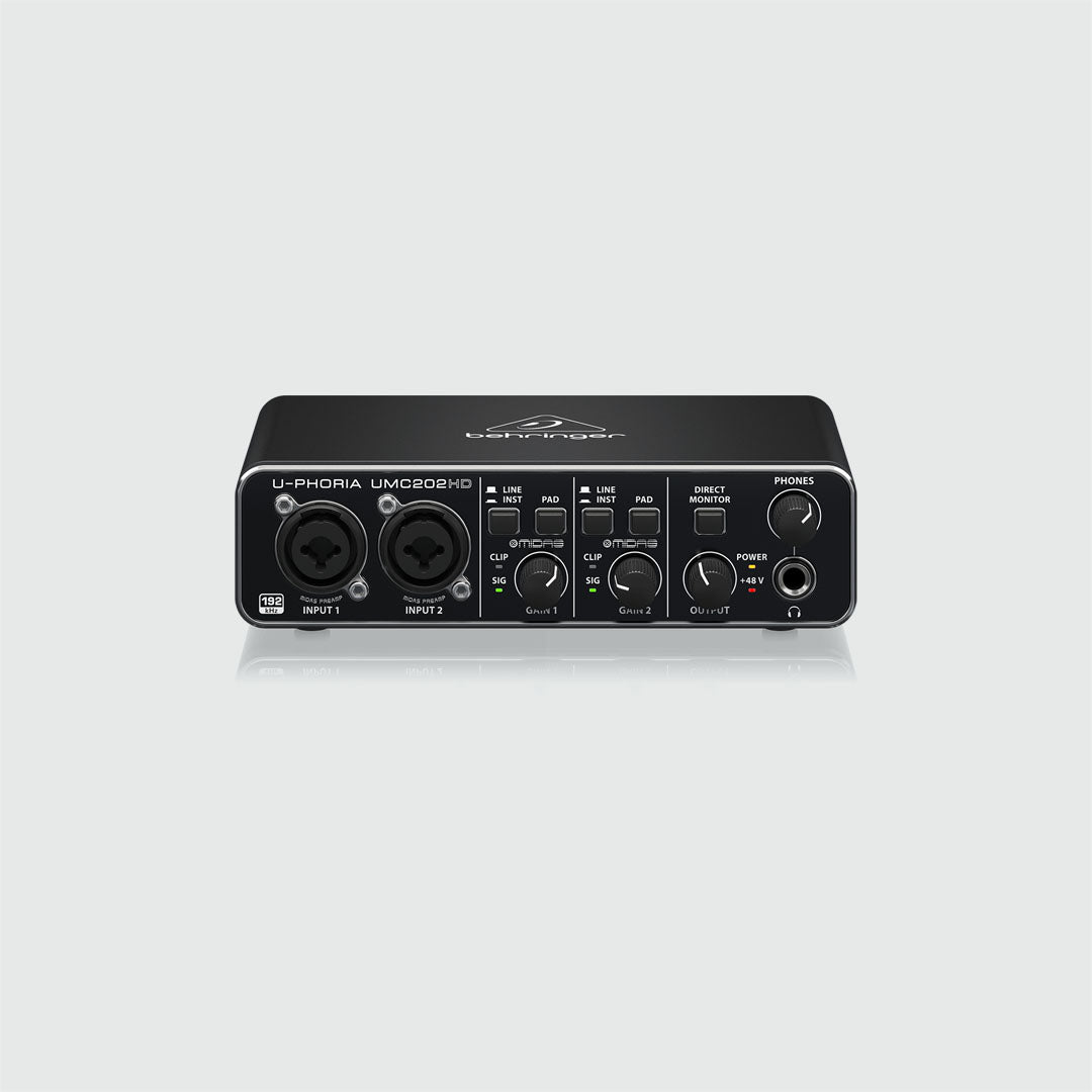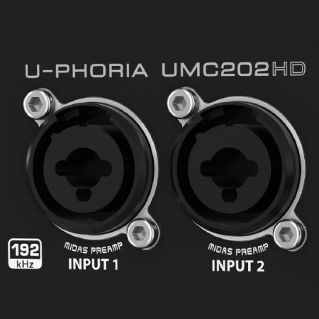 This blazingly fast USB 2.0 studio in a box will have you recording your next masterpiece in minutes with all the connectivity for microphones, guitars, bass and keyboards. Record the perfect vocal right to your computer-based DAW thanks to the 2 astonishingly pure, worldclassMidas-designed mic preamps, which include +48 Volt phantom power for condenser microphones, all going through studio-grade 24-Bit/192 kHz converters for the best possible sound quality. Whether you’re a singer-songwriter, producer on the go, or just need a rock-solid interface for running backing tracks at a gig, the ultra-dependable U-PHORIA UMC202HD will help you shine in the digital domain.