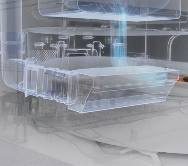 The mop pads are quickly soaked, rotated and scrubbed by powerful water jets to remove dirt. After cleaning, the mop pads are then automatically air-dried to prevent moulds and musty odours caused by moisture.